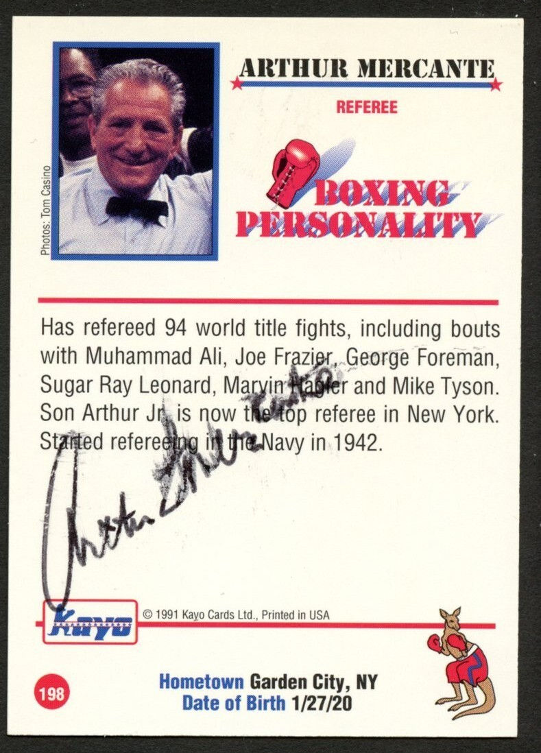 Arthur Mercante #198 signed autograph auto 1991 KAYO Boxing Trading Card